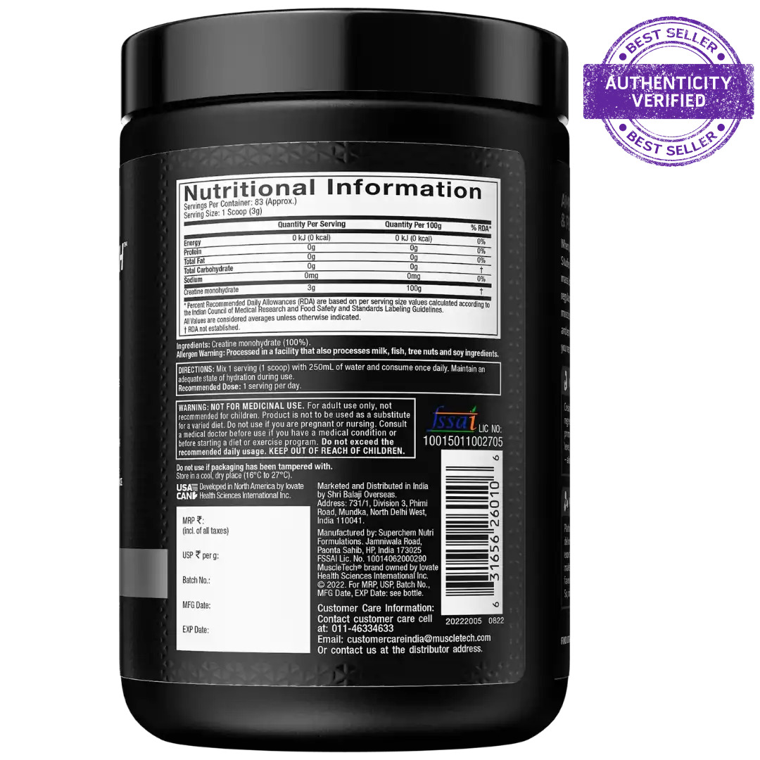 When it comes to creatine, serious athletes get it. Studies show that creatine can increase lean muscle mass, boost strength, and help you perform beyond regular capacity. MuscletechTM Platinum 100% Creatine provides your muscles with a high-quality form of micronized creatine and each serving provides a researched 3g dose to help you reach your goals – and then surpass them.